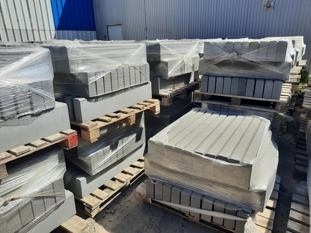 Изделия изготавливаются из полусухой жесткой бетонной смеси, изначально содержащей мало воды. Мало воды в бетонной смеси – меньше пор в уже готовом бордюре, меньше пор – меньше поглощения влаги, меньше влаги – больше шансов на получения крепкого и долговечного изделия.